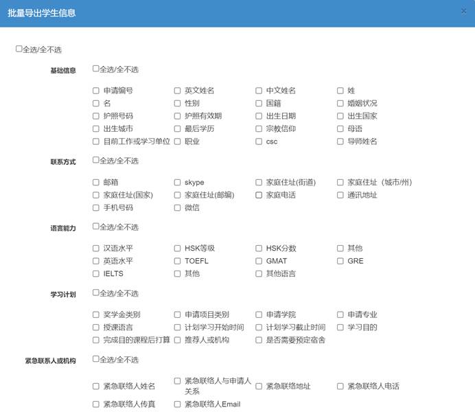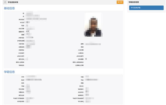 国际学生管理模块可以对学生的基础信息进行维护修改,学籍异动维护(包括异动类型、异动原因,操作人、操作时间等)、学籍异动记录查询,对学生保险信息进行登记等,还可以选择字段导出学生信息等。