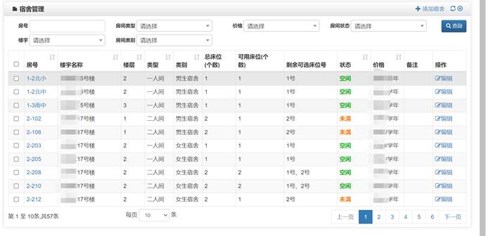 国际学生住宿管理模块可以对宿舍楼宇、房间、床位、房间价格、房间类别、房间类型等信息进行维护。可以对学生住宿信息进行登记、给学生办理退宿等。