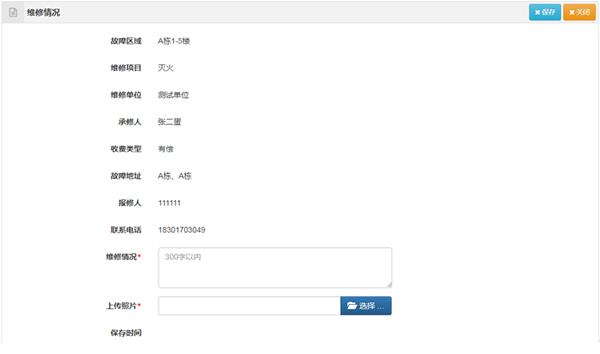 维修分:无偿、有偿,管理员可设置维修区域、维修项目的收费类型,未设置的默认为无偿。用户报修时可以看到是免费维修还是收费维修。收费维修时,维修完成后可录入收费情况。