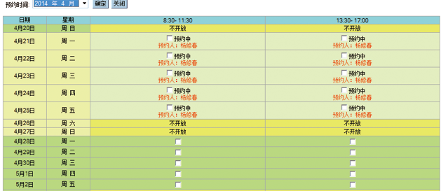 系统可设置统一的开放计划模板,大部分仪器用统一的模板设置开放计划,特殊仪器也可以设置个性化的开放计划,如以半小时为单位进行预约。