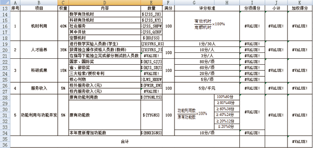 对仪器负责人可录入仪器的获奖情况、发明专利、发表论文、人员培训等教研成果;管理员可在EXCEL里设置各项指标的权重、考核得分计算公式;综合仪器的教研成果、使用情况,可计算仪器考评得分,进行全校排名。