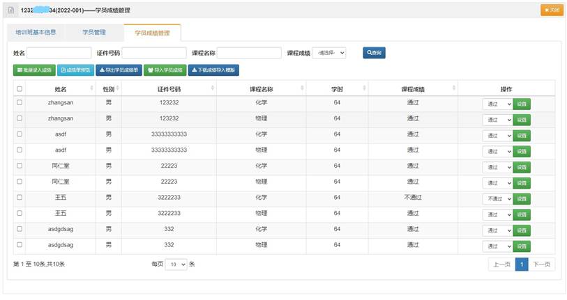 学员成绩管理包含:课程管理、学员管理、学员成绩管理和班级课程相关统计。学院办班负责人可以维护课程、学员及考核成绩,批量导入相关数据并导出班级学员成绩单归档。