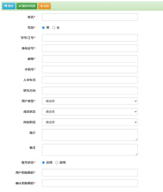 对各个课题组成员建立基本信息,对课题组成员进行统一化管理。