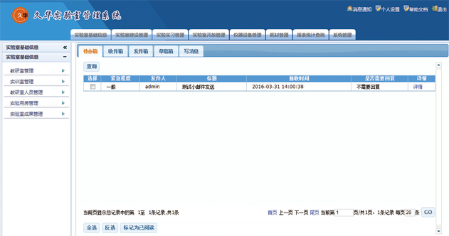 支持实验中心、实验室、实验分室三级管理,可管理实验室编号、名称、类别、学科、主任、简介等基本信息;可管理实验室占用哪些房间,有哪些工作人员,有哪些实验设备,开设哪些实验项目。